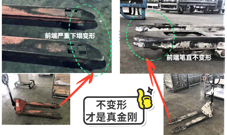 本款手動(dòng)叉車充分具備經(jīng)久耐用、貨叉前段不變形、操作輕松三大特點(diǎn)