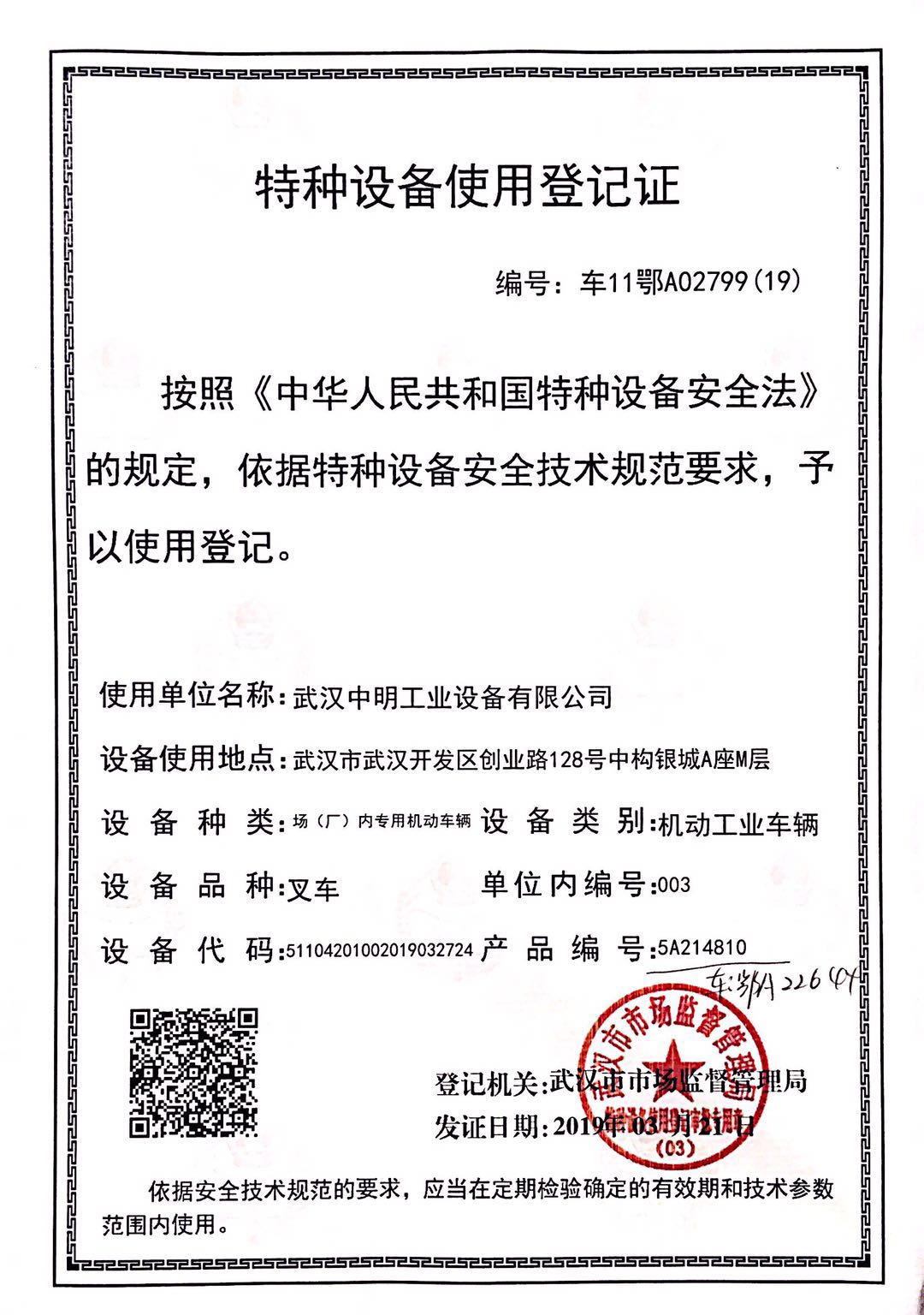 3、有效期內(nèi)的叉車監(jiān)督檢驗(yàn)報(bào)告