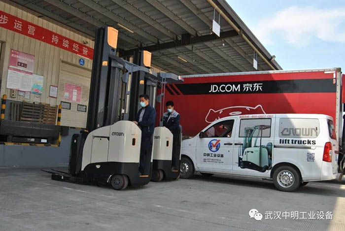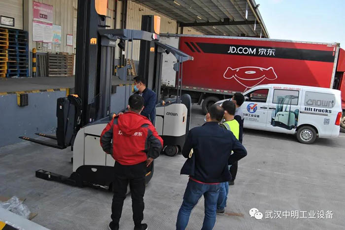 武漢中明多臺雙深度叉車交付京東,助力抗疫期民生物資搬運