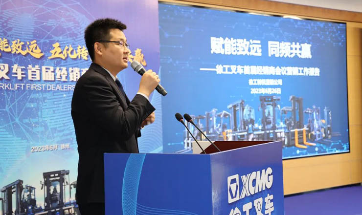 第二個(gè)環(huán)節(jié)是徐工叉車營(yíng)銷工作報(bào)告。徐工特機(jī)副總經(jīng)理、營(yíng)銷公司總經(jīng)理胡斯勒在會(huì)上作了營(yíng)銷工作主題報(bào)告,回顧近年徐工叉車取得的市場(chǎng)成就,從宏觀角度深刻剖析全球及行業(yè)發(fā)展趨勢(shì),全面闡述了徐工叉車戰(zhàn)略藍(lán)圖、經(jīng)營(yíng)模式、業(yè)務(wù)模式,開拓了我們經(jīng)銷商的經(jīng)營(yíng)思路和應(yīng)對(duì)措施,鼓勵(lì)叉車經(jīng)銷商們協(xié)同一致,行而不輟,未來(lái)可期。