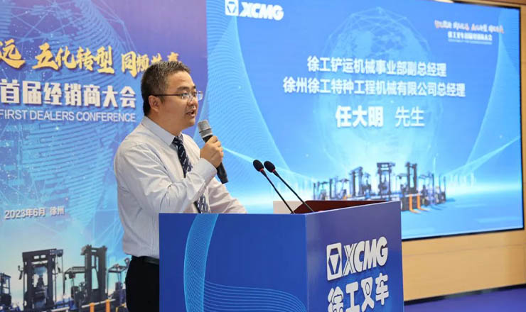 在這場(chǎng)盛會(huì)上,徐工鏟運(yùn)機(jī)械事業(yè)部副總經(jīng)理、徐工特機(jī)總經(jīng)理任大明發(fā)表了熱情洋溢的演講。他表示,徐工以戰(zhàn)略產(chǎn)業(yè)的最高定位發(fā)展新能源叉車事業(yè),十四五期間,徐工叉車逐步在零部件自主可控、產(chǎn)品認(rèn)知度、國(guó)際化市場(chǎng)開拓等方面快速實(shí)現(xiàn)突破。
